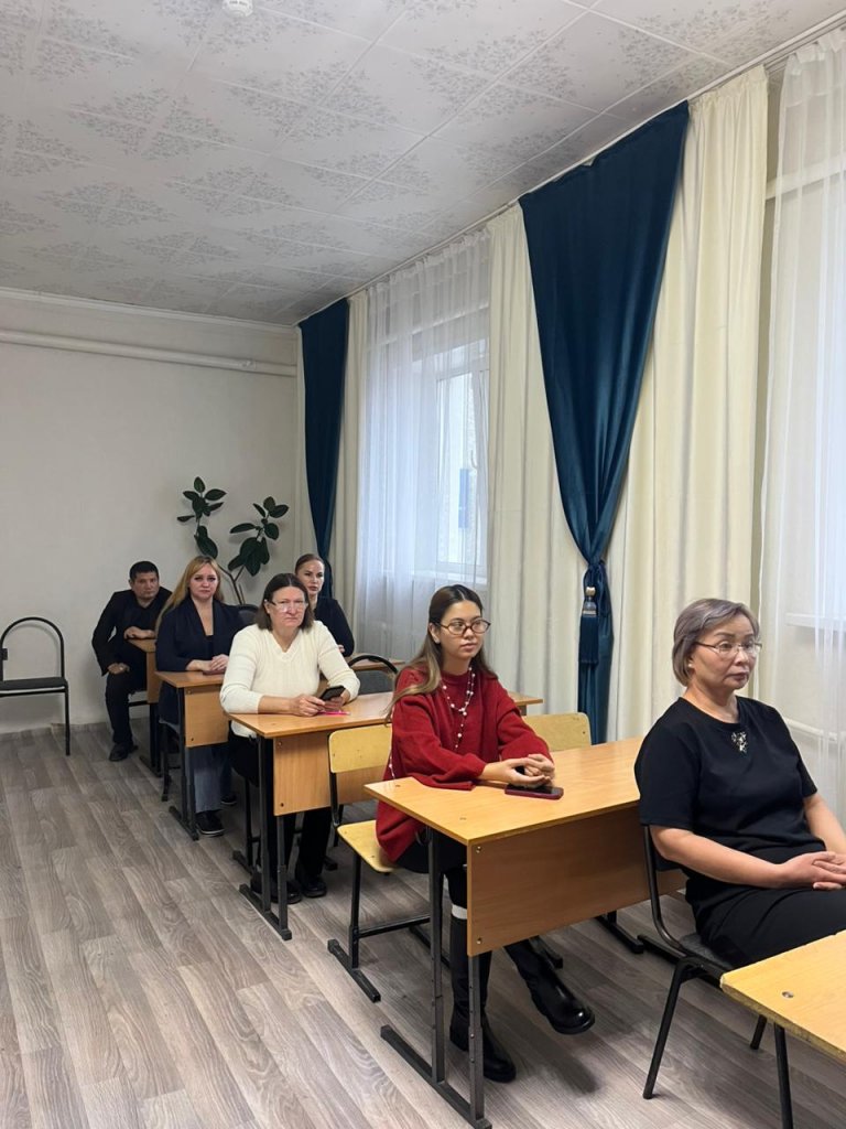 2025 жылғы 14 қарашада мектеп директорының міндетін атқарушы С Ерекешева және педагогикалық этика жөніндегі кеңестің төрағасы Р. З. Манатова мектеп ұжымымен кездесу өткізді, онда педагогтердің оқушылармен, ата-аналармен және әріптестермен өзара іс-қимылының өзекті мәселелері, сондай-ақ кәсіби мінез-құлық нормаларын сақтау талқыланды.